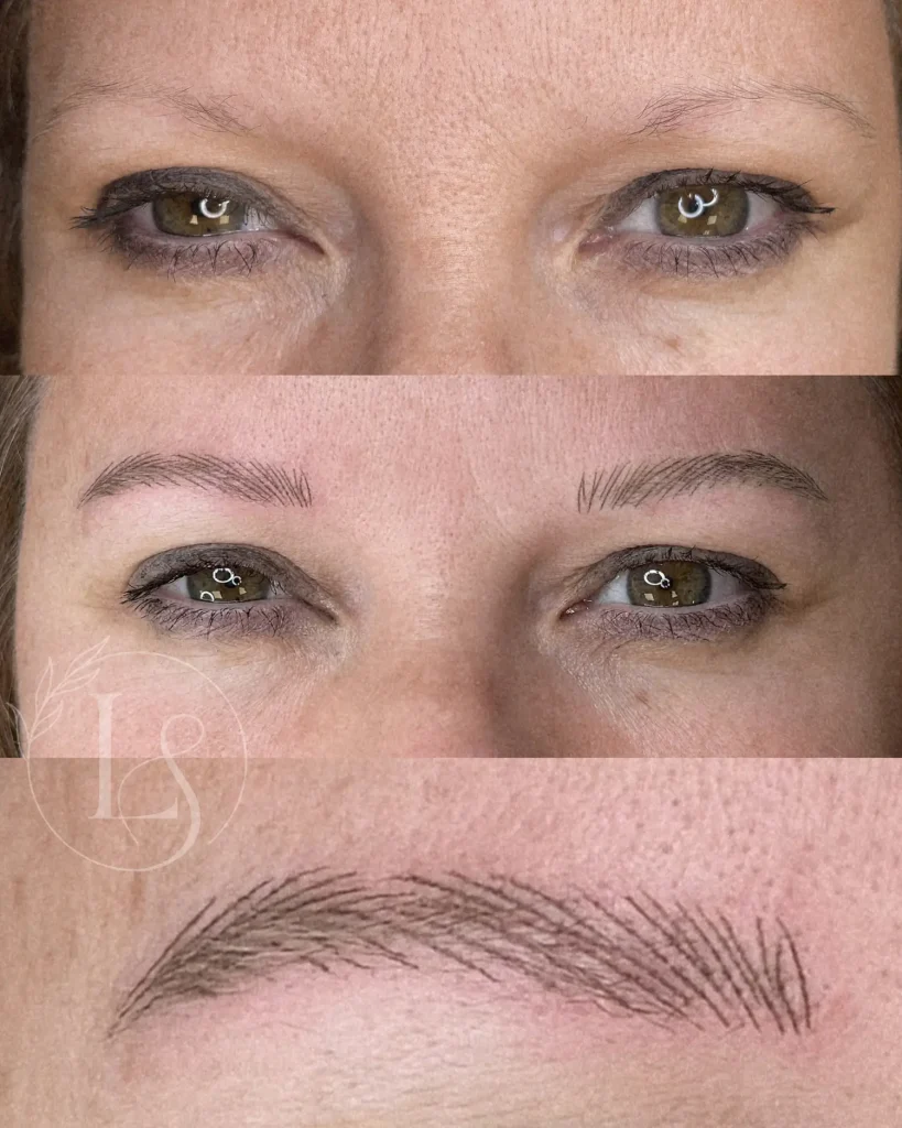 Powder brows are best suited for people who want a soft, filled-in look that resembles makeup or brow powder rather than individual hair strokes. This technique also works well when there aren’t enough natural hairs for hairstroke effects.